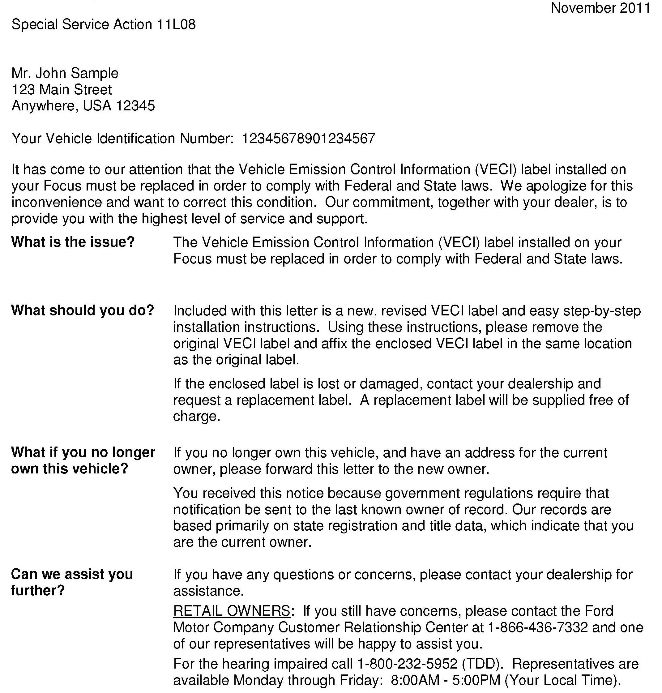 Recall - VECI Label Replacement
