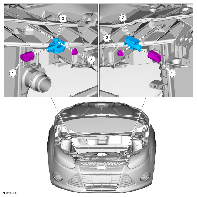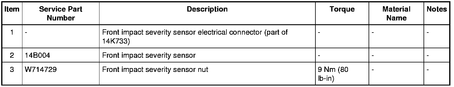 1. NOTE: Make sure the front impact severity sensor mating surfaces are clean and free of foreign material.
