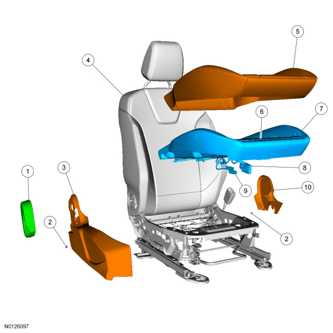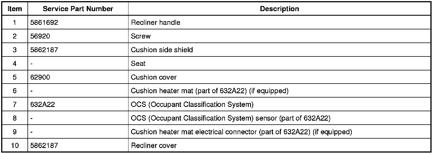 NOTICE: The cushion heater mat on a front outboard passenger seat is not serviced separately. If a new cushion heater mat is needed on the front passenger seat, install an OCS (Occupant Classification System) service kit equipped with a heater mat. Failure to follow this instruction may result in incorrect operation of the OCS (Occupant Classification System).