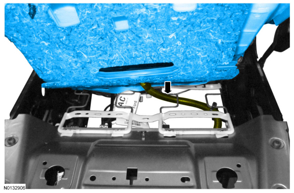 2. NOTICE: Inspect the OCS (Occupant Classification System) bladder, seat cushion pan and support assembly for any foreign objects before installing the OCS (Occupant Classification System) to the seat cushion pan. Remove any foreign objects found. Failure to follow these instructions may result in incorrect operation of the OCS (Occupant Classification System) and may cause system failure.