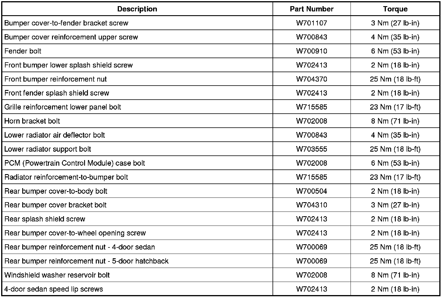 Torque Specifications