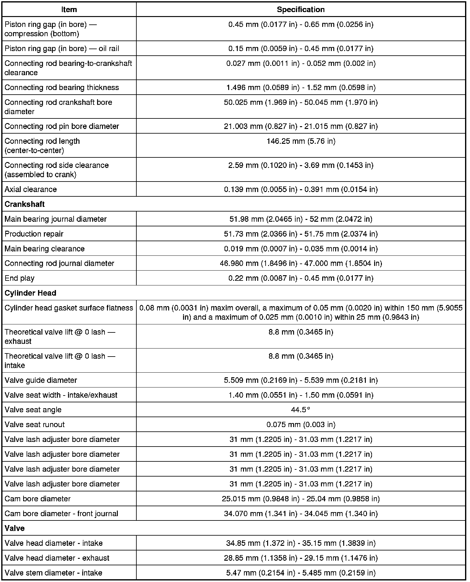 Camshaft Gear/Sprocket Torque Specifications