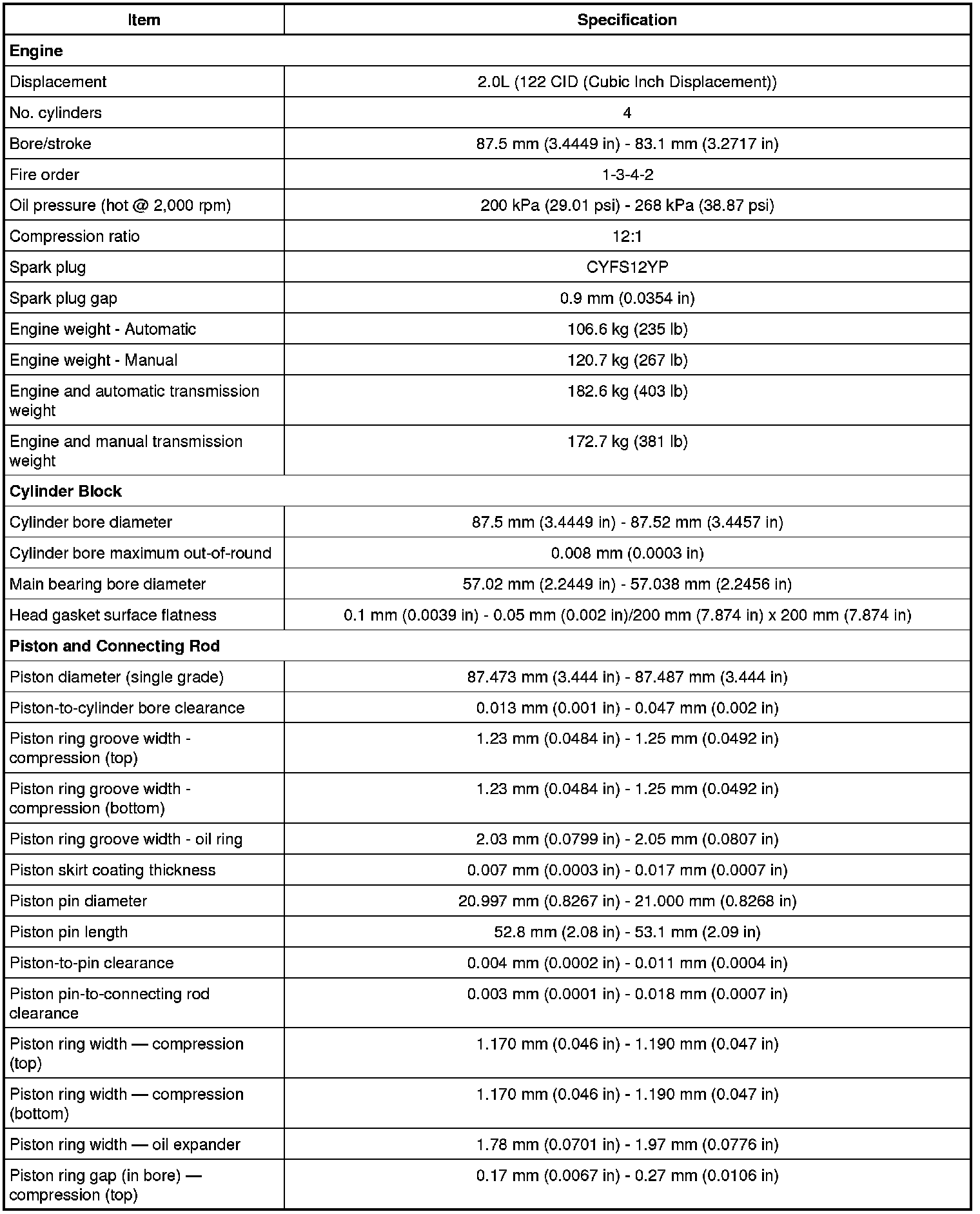 Intake Manifold Specifications