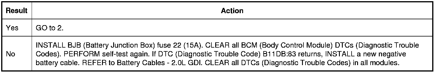 Did DTC (Diagnostic Trouble Code) B11DB:83 return?