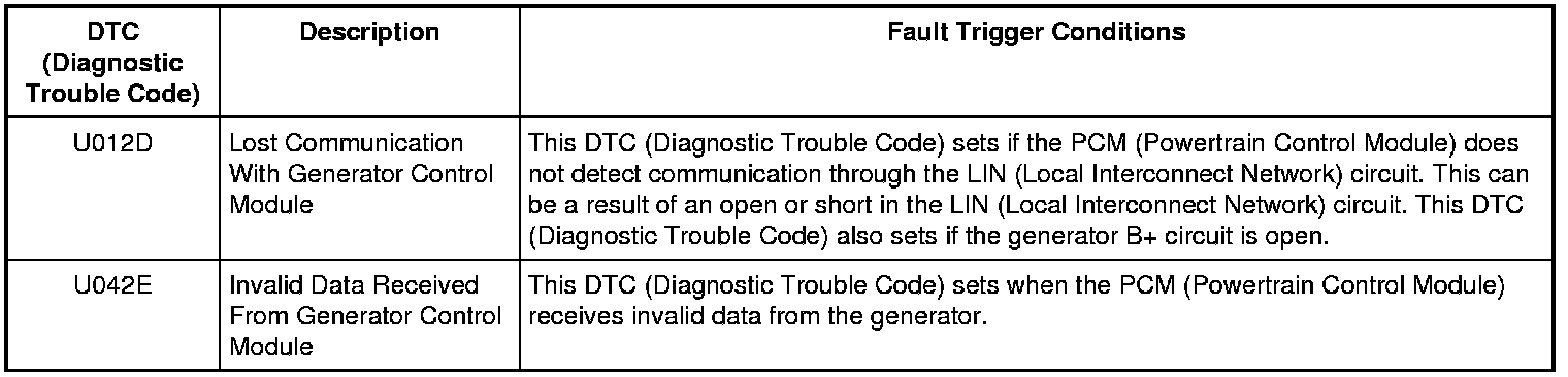 The charging system supplies voltage to the battery and the vehicle electrical system through the battery B+ cable. The PCM (Powertrain Control Module) monitors the generator output through a dedicated LIN (Local Interconnect Network) communication circuit. The generator uses this LIN (Local Interconnect Network) circuit to communicate the desired voltage setpoint from the PCM (Powertrain Control Module) to the internal voltage regulator. The generator also uses this LIN (Local Interconnect Network) circuit to communicate the generator load and error conditions to the PCM (Powertrain Control Module).