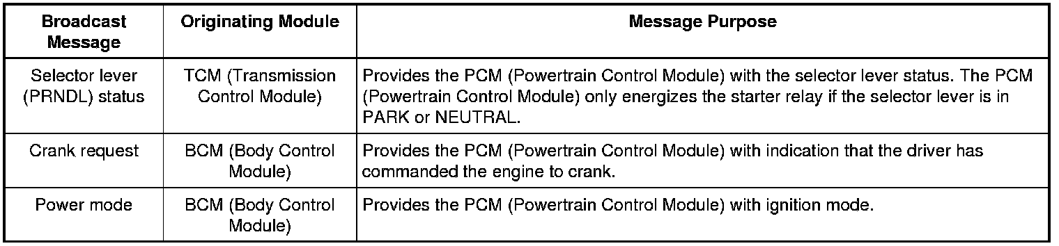 Module Network Input Messages PCM (Powertrain Control Module)