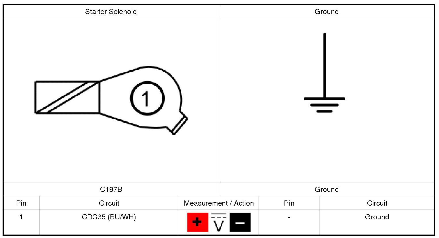 When the start/stop switch is pressed in combination with the brake or clutch pedal (depending upon transmission), the RFA (Remote Function Actuator) module, BCM (Body Control Module) and PCM (Powertrain Control Module) receive signals to crank and start the engine. The PCM (Powertrain Control Module) and BCM (Body Control Module) receive notification from the TCM (Transmission Control Module) that the vehicle is in PARK or NEUTRAL (vehicles equipped with an automatic transmission) or from the Clutch Pedal Position (CPP) switch when the clutch pedal is fully applied (vehicles equipped with manual transmission). The PCM (Powertrain Control Module) supplies voltage and ground to the starter relay coil. The energized coil causes the starter relay contacts to close. This allows voltage to be supplied from the BJB (Battery Junction Box) to the starter solenoid coil. The starter solenoid coil is grounded at the starter motor. Energizing the starter solenoid closes the solenoid contacts allowing voltage directly from the battery to the starter motor, engaging the starter drive into the ring gear causing the engine to crank. The PCM (Powertrain Control Module) disengages the starter motor once an engine RPM (Revolutions Per Minute) threshold is reached, a set crank time is exceeded or the start/stop switch is pressed indicating an engine shutdown.