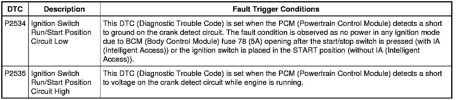 When the ignition is turned to the START position or the start/stop switch has been pressed, the PCM (Powertrain Control Module) receives a voltage signal on the crank detect circuit. When the required inputs have been received, the PCM (Powertrain Control Module) supplies voltage and ground to the starter relay coil.