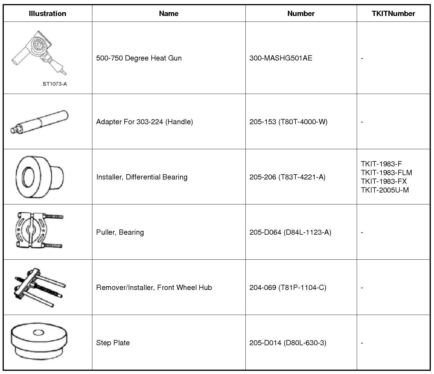 Using 205-206 (T83T-4221-A) and 205-153 (T80T-4000-W) , install the new differential bearings.
