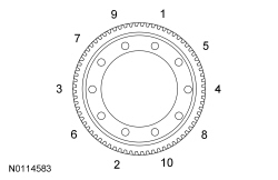 3. Remove and discard the differential ring gear bolts. Lightly tap the ring gear to separate it from the differential case.
