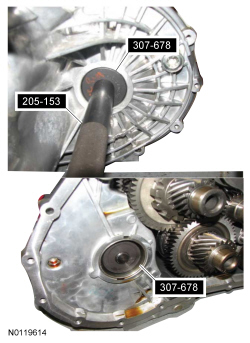 2. Using 205-153 (T80T-4000-W) and 307-678 , remove the differential gear case bearing cup.