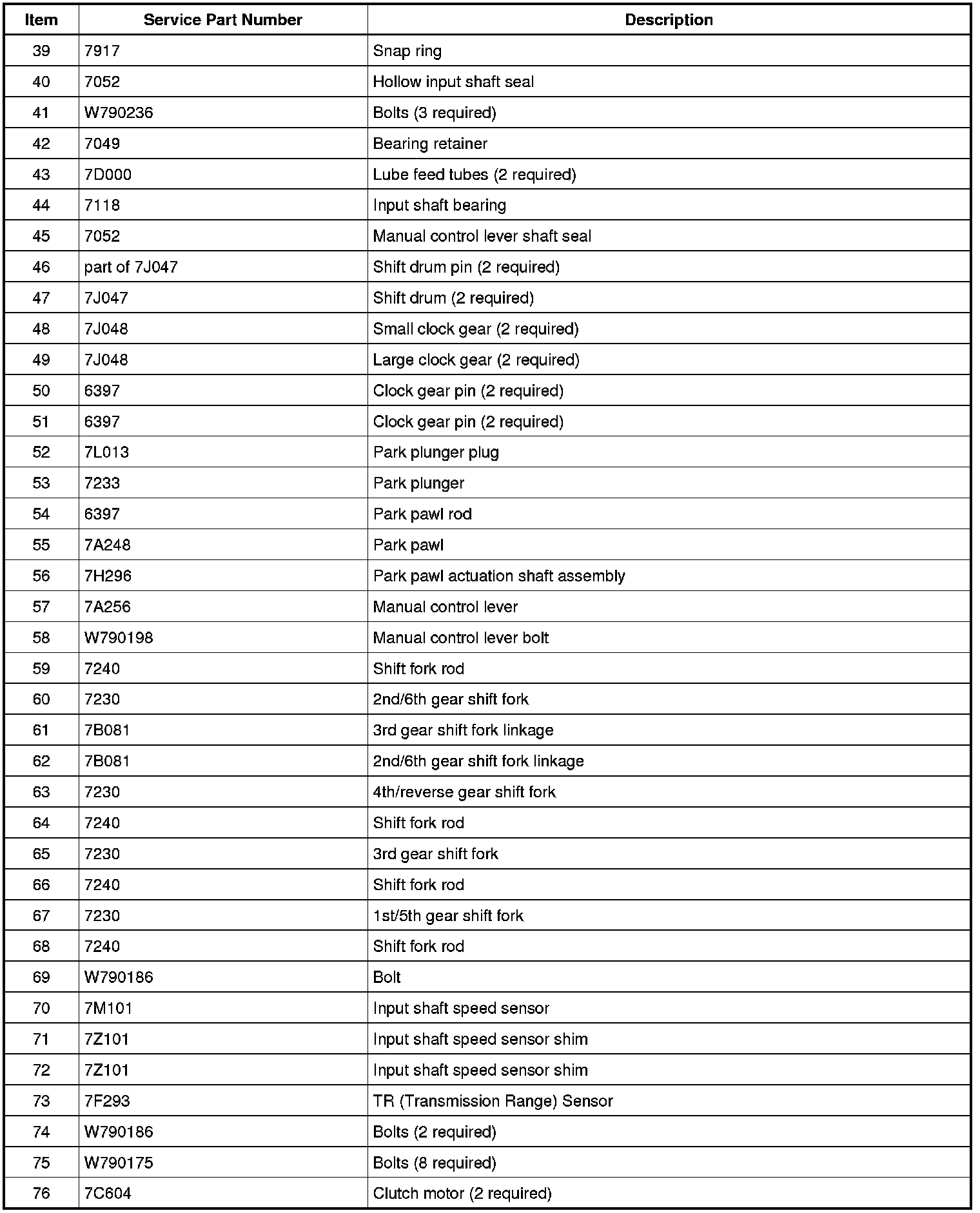 44. NOTE: One clutch actuator lever bushing shown, one per clutch actuator lever.