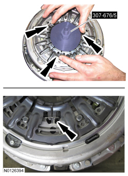 Using 307-675 /1, 307-675 /2 and 307-675 /4 install the clutch in the transaxle.
