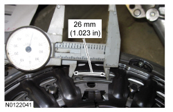 69. Check clutch 1 for wear by measuring the distance between the adjuster ring 1 long hole and lever 1 spring. Replace the clutch assembly if the measurement is 26 mm (1.0236 in) or less.