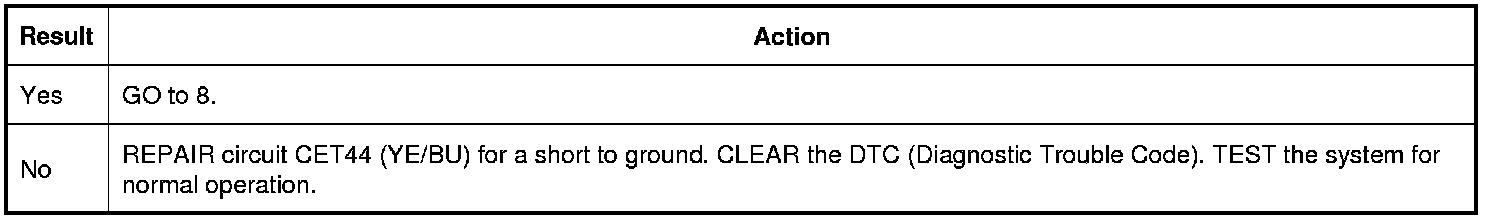 2. Measure the resistance of circuit CET44 (YE/BU) between floor shifter C3245-5 and ground.
