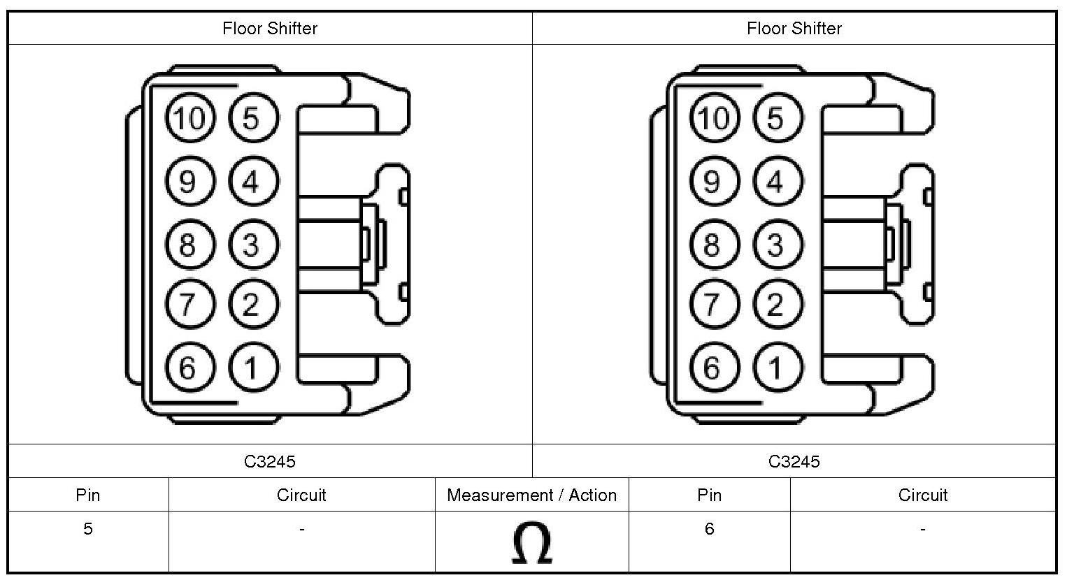 1. Measure the resistance between selector lever C3245-5 and C3245-6 while cycling the TCS (Transmission Control Switch).