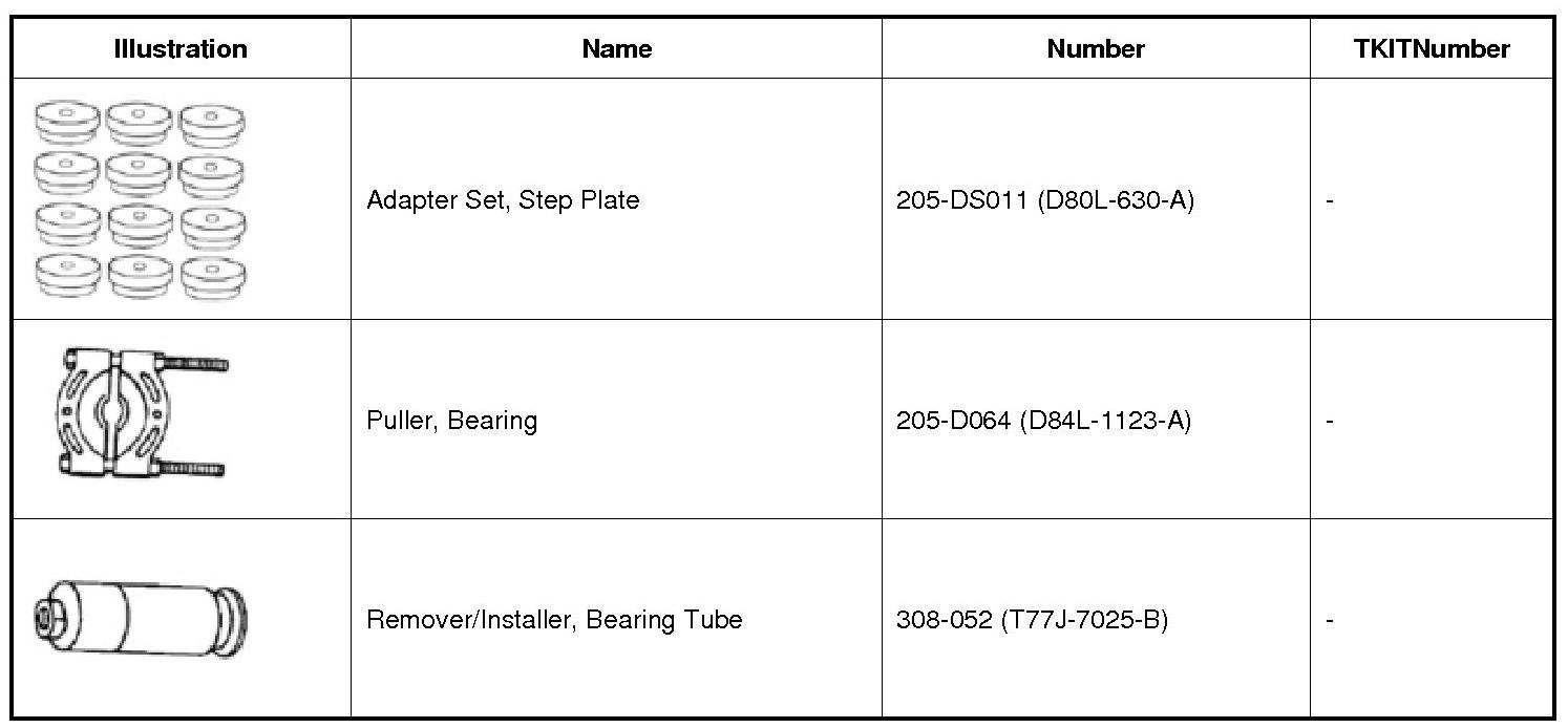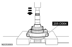 Using a press and 205-D064 (D84L-1123-A) , remove the output shaft bearing and the reverse gear. Discard the output shaft bearing.