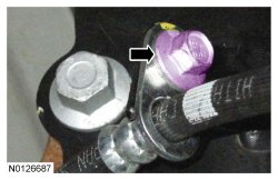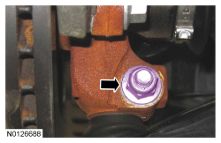19. Remove and discard the RH (Right Hand) ball joint nut and bolt.