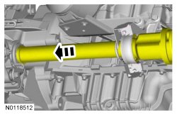 21. Remove the RH (Right Hand) halfshaft and intermediate shaft assembly from the transmission and position it aside.