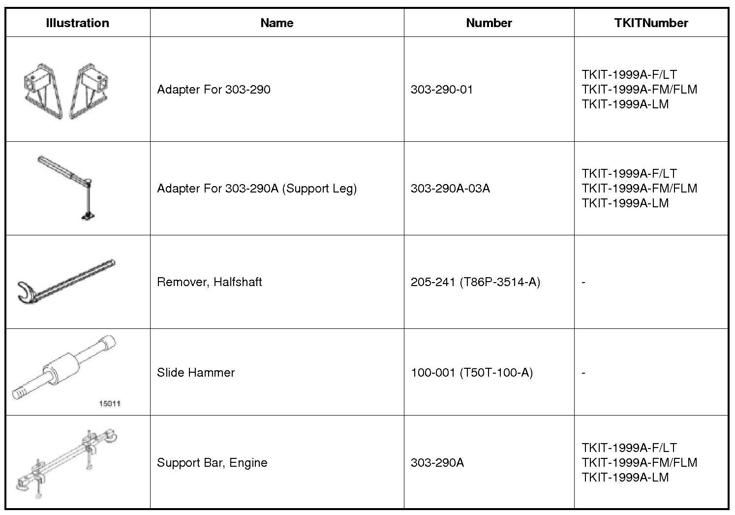 2. Using 303-290-01 , 303-290A and 303-290A-03A , raise the engine and transaxle assembly.
