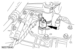 10. Install the starter relay bracket and the 2 starter relay bracket nuts. Install the wiring retainer on the starter stud bolt.