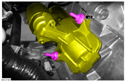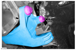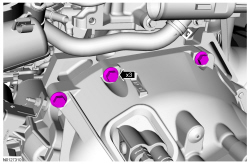 6. Remove the 3 transmission support insulator bracket bolts and the transmission support insulator bracket.