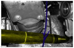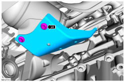 25. NOTICE: The exhaust flexible pipe is supported to keep it from being bent too far while it is disconnected from the tailpipe assembly. Failure to support the exhaust flexible pipe can result in damage to the exhaust flexible pipe.
