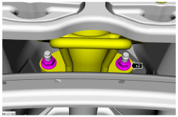 - Tighten the support insulator bolt to 150 Nm (111 lb-ft).