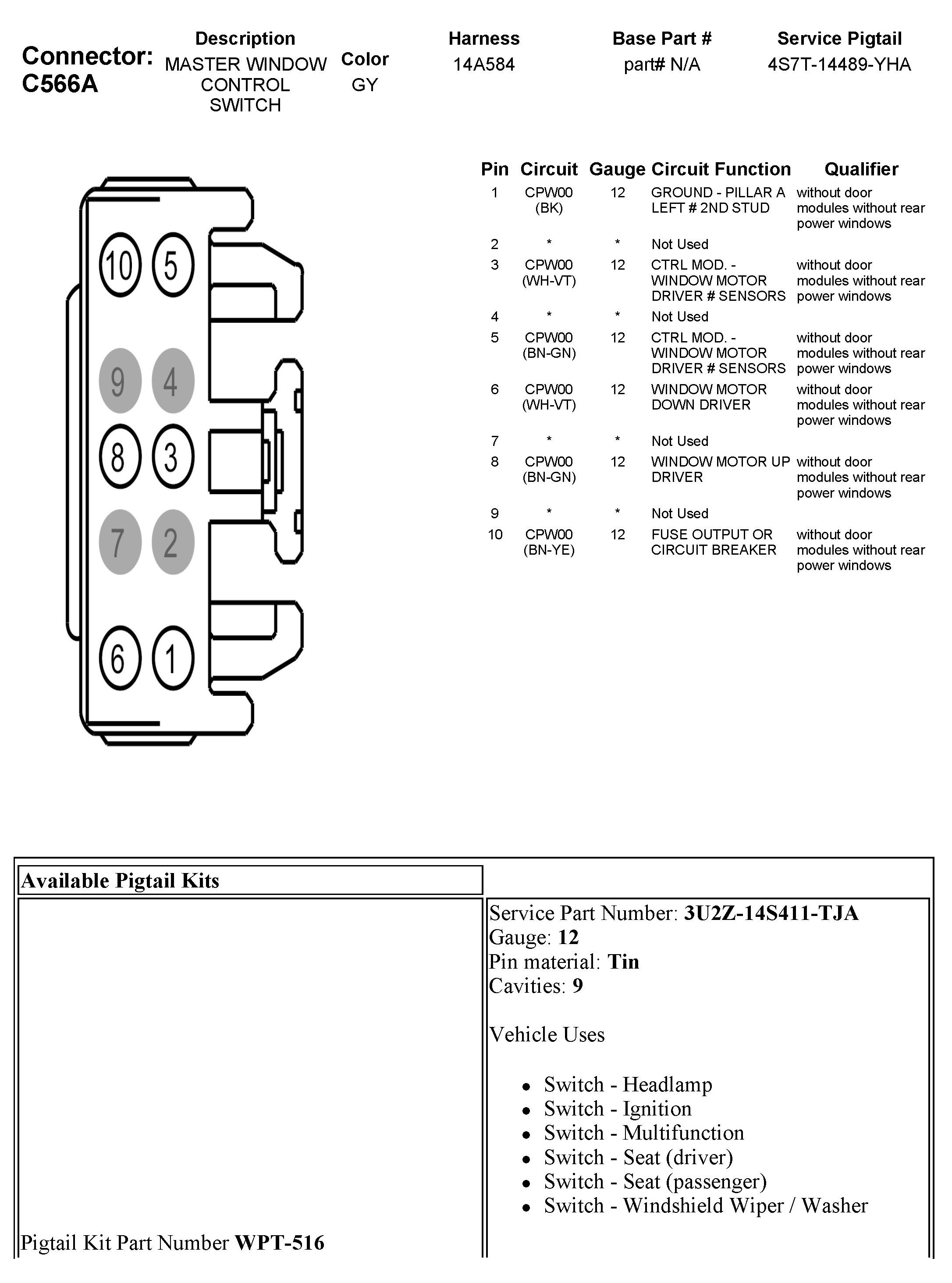 C566A Master Window Control Switch
