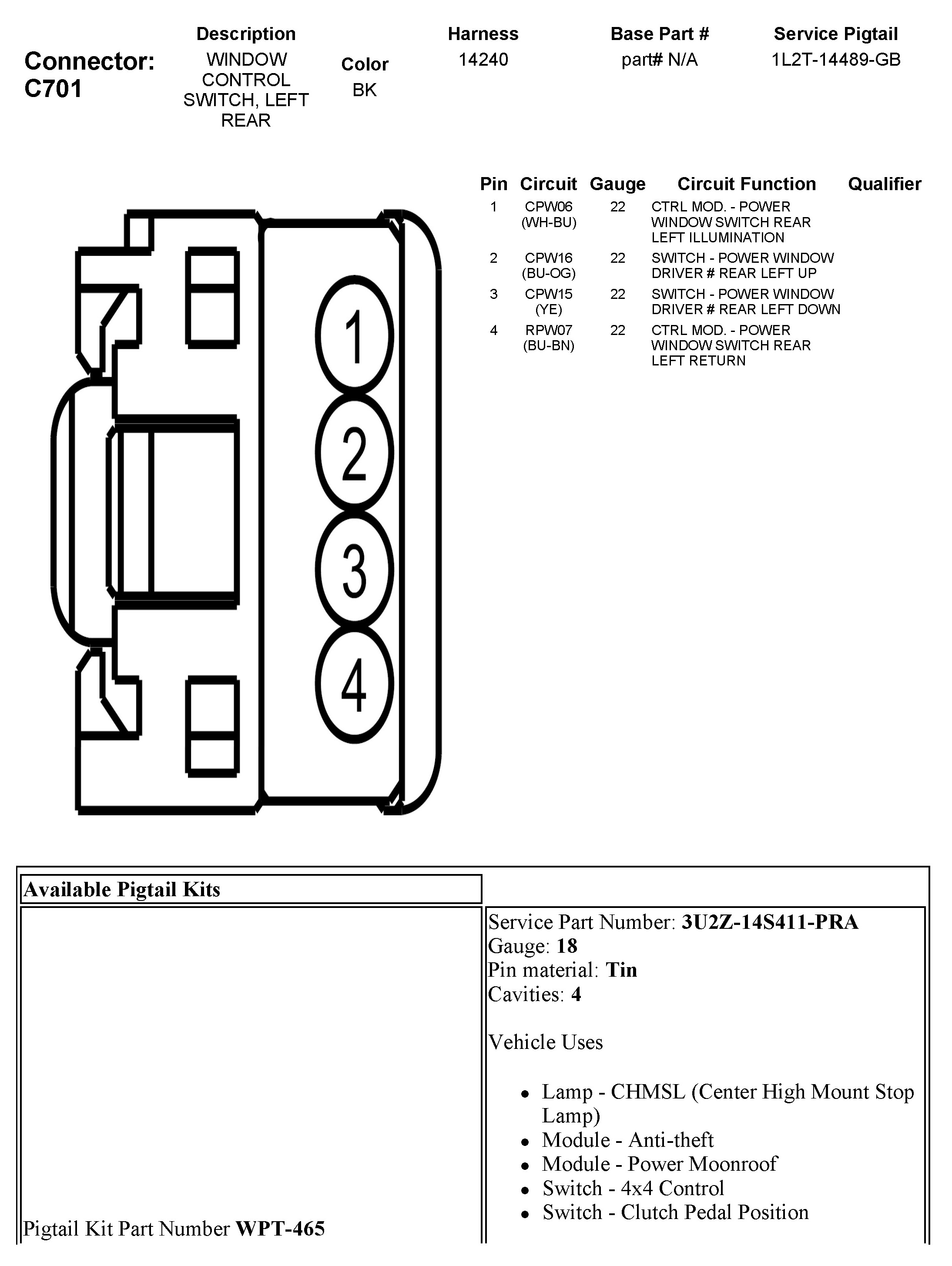 C701 Window Control Switch, Left Rear