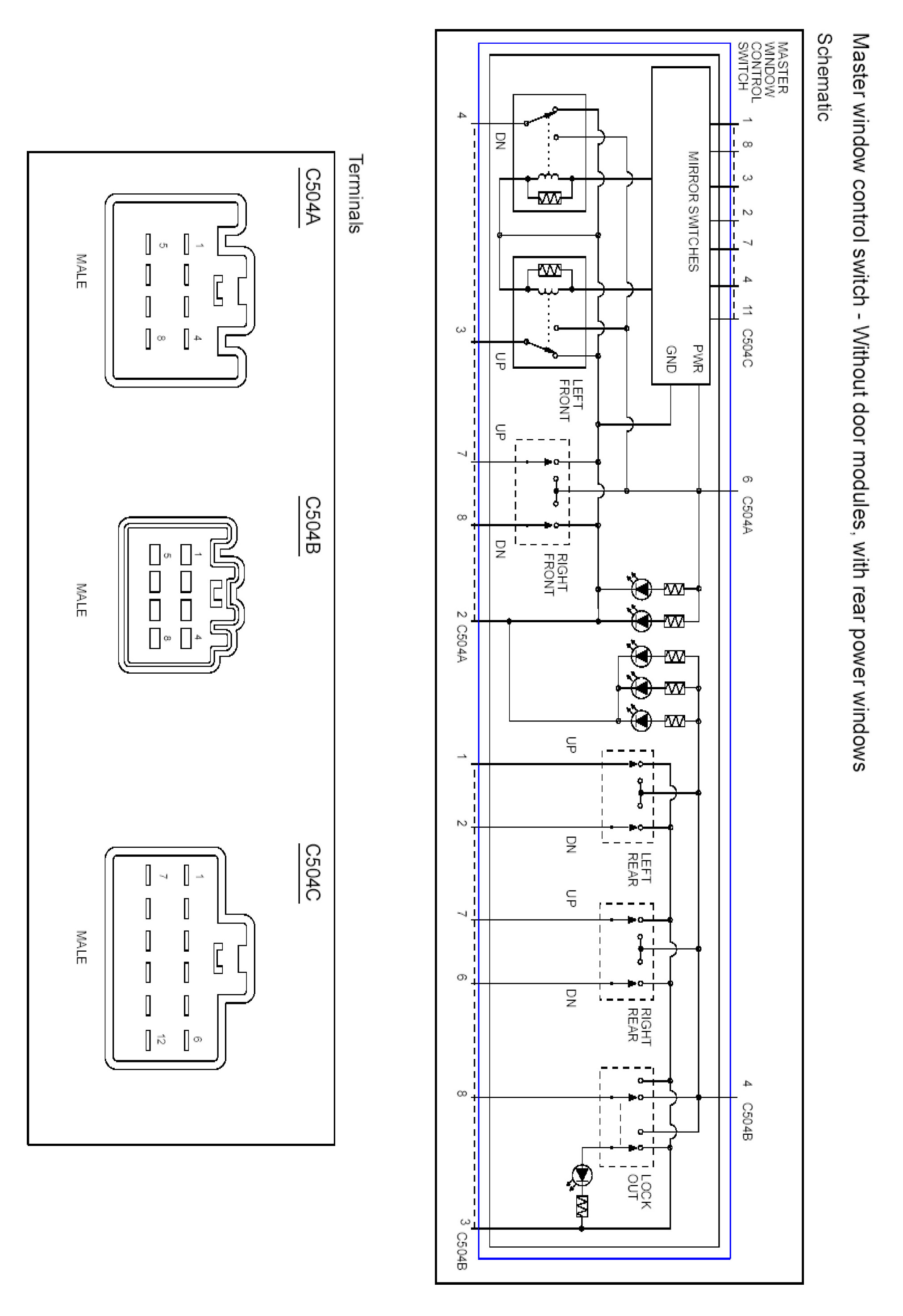 Master Window Control Switch - Without Door Modules, With Rear Power Windows