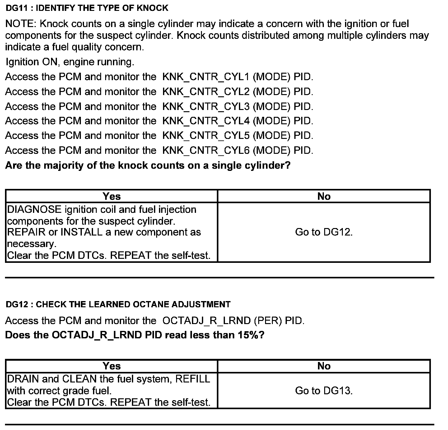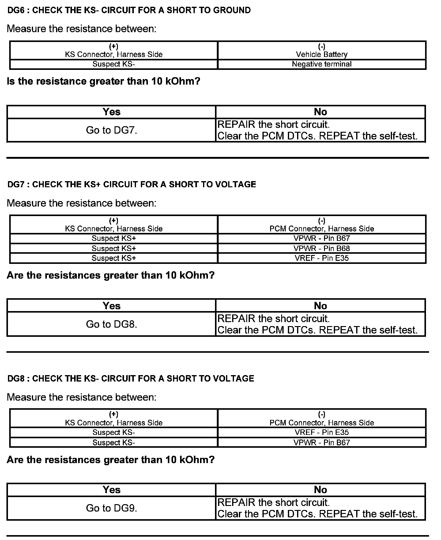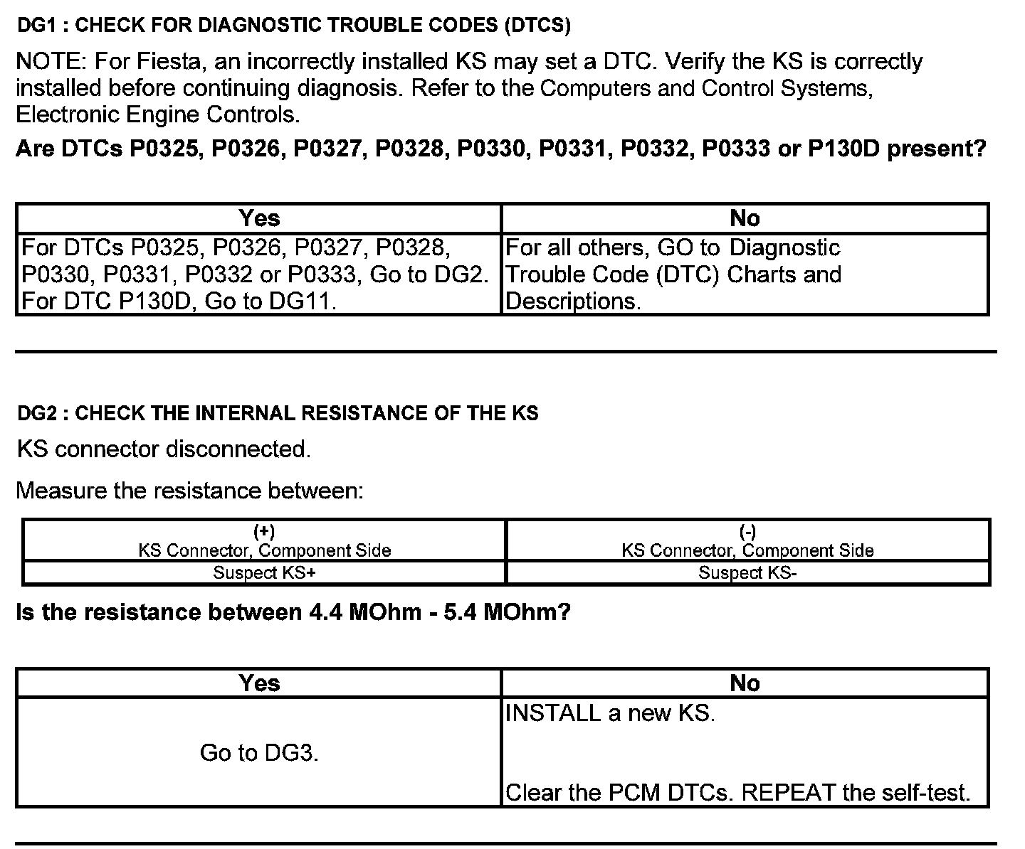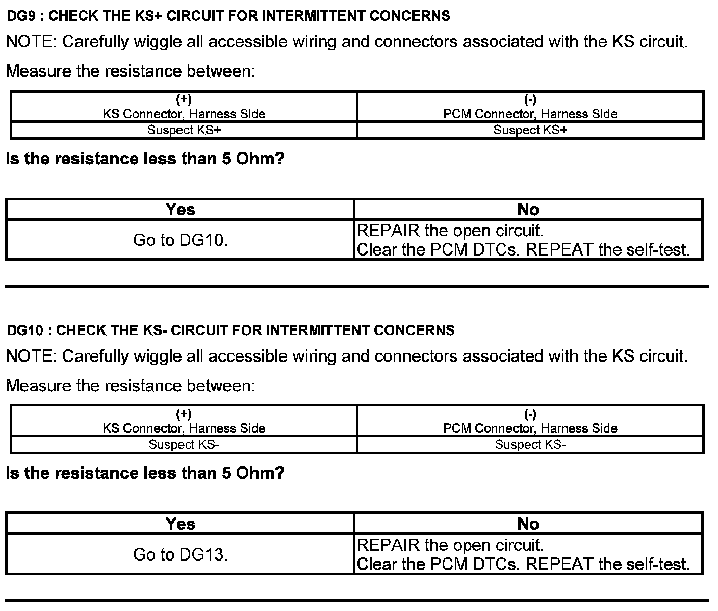 Test DG: Knock Sensor (KS)