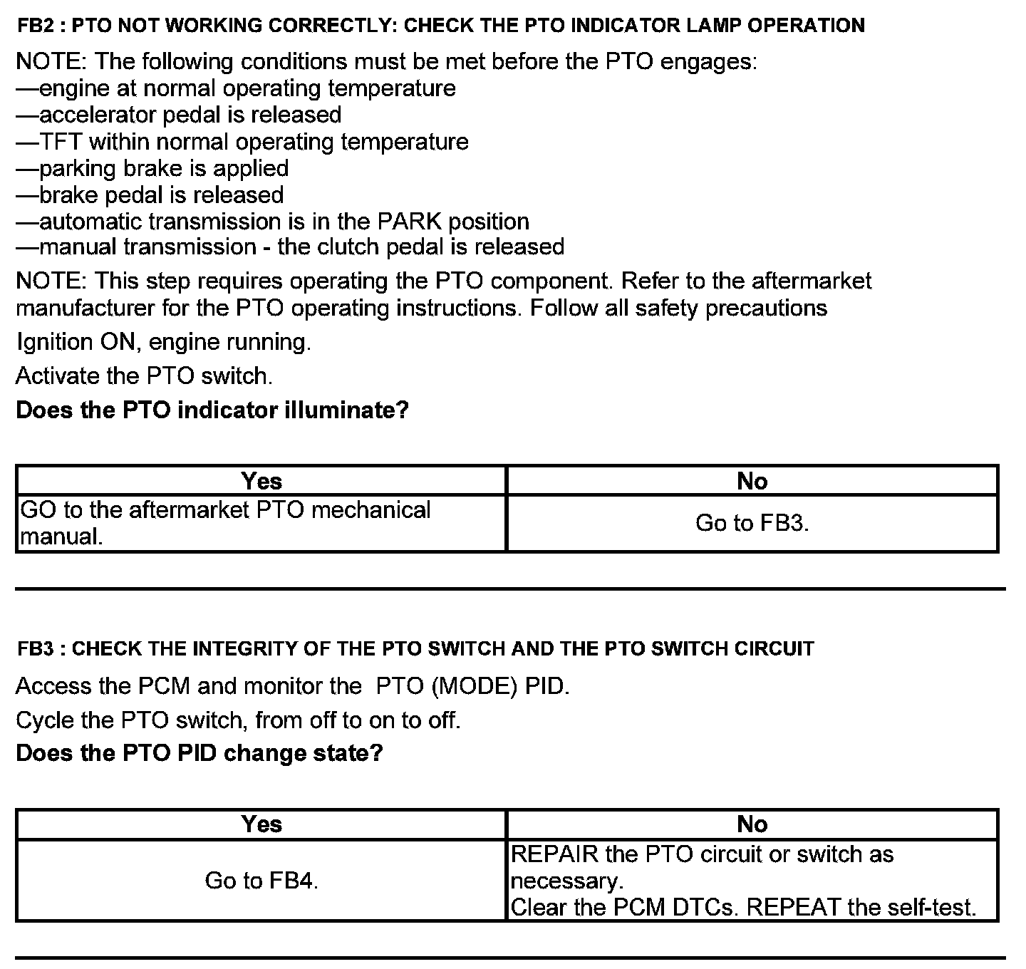 Test FB: Power Take Off (PTO)