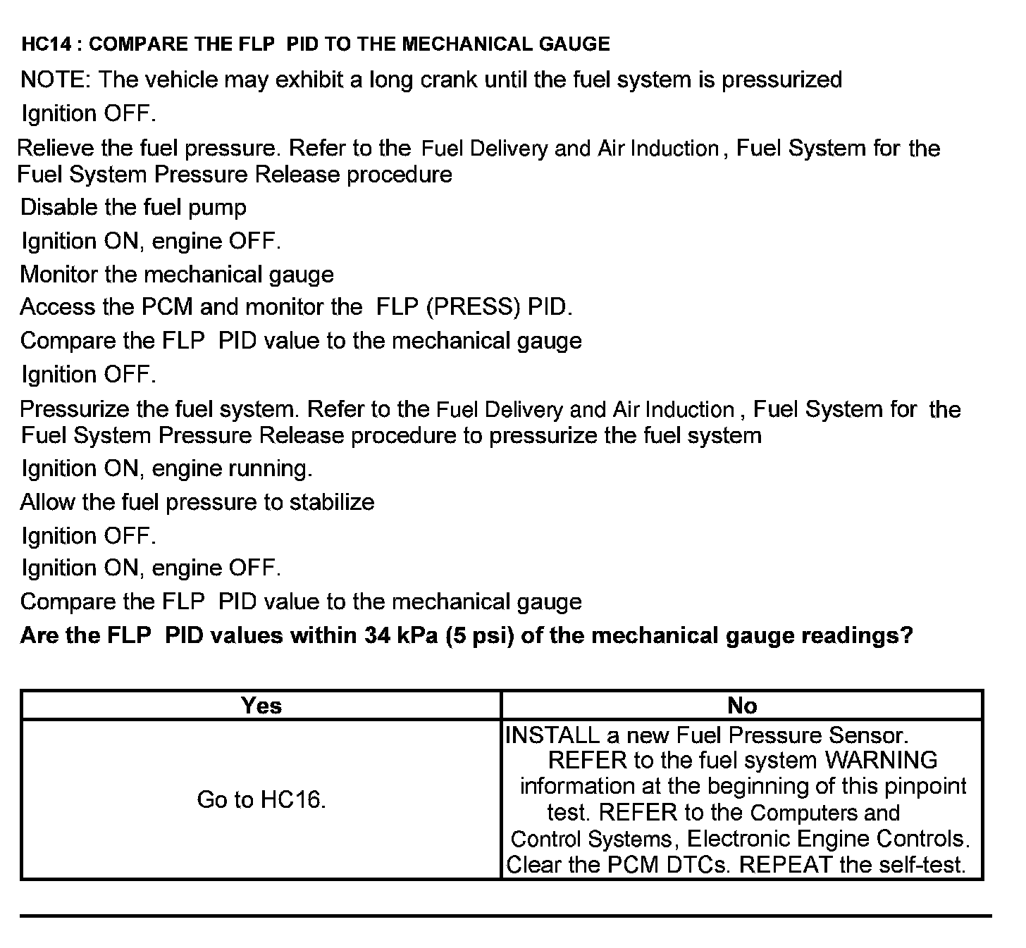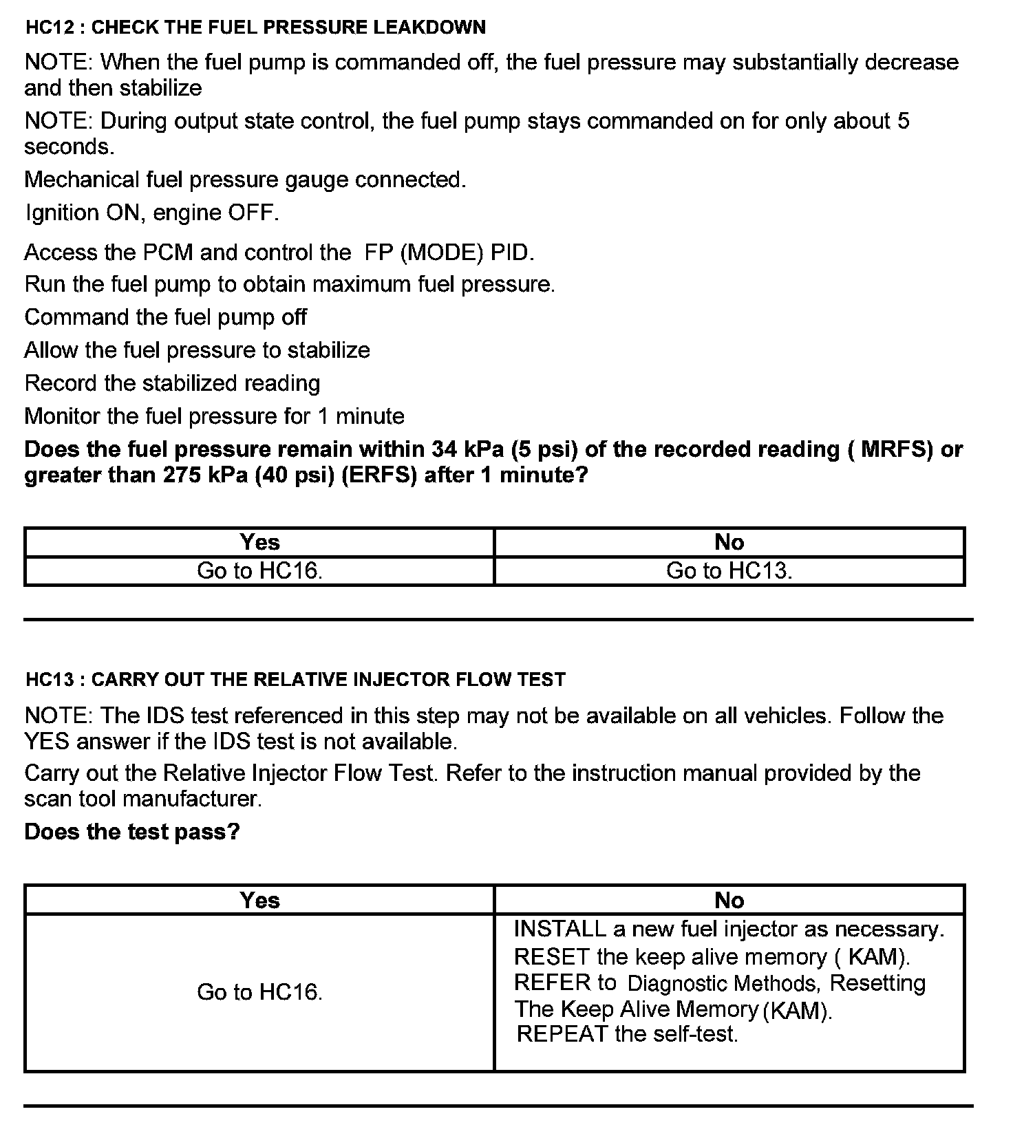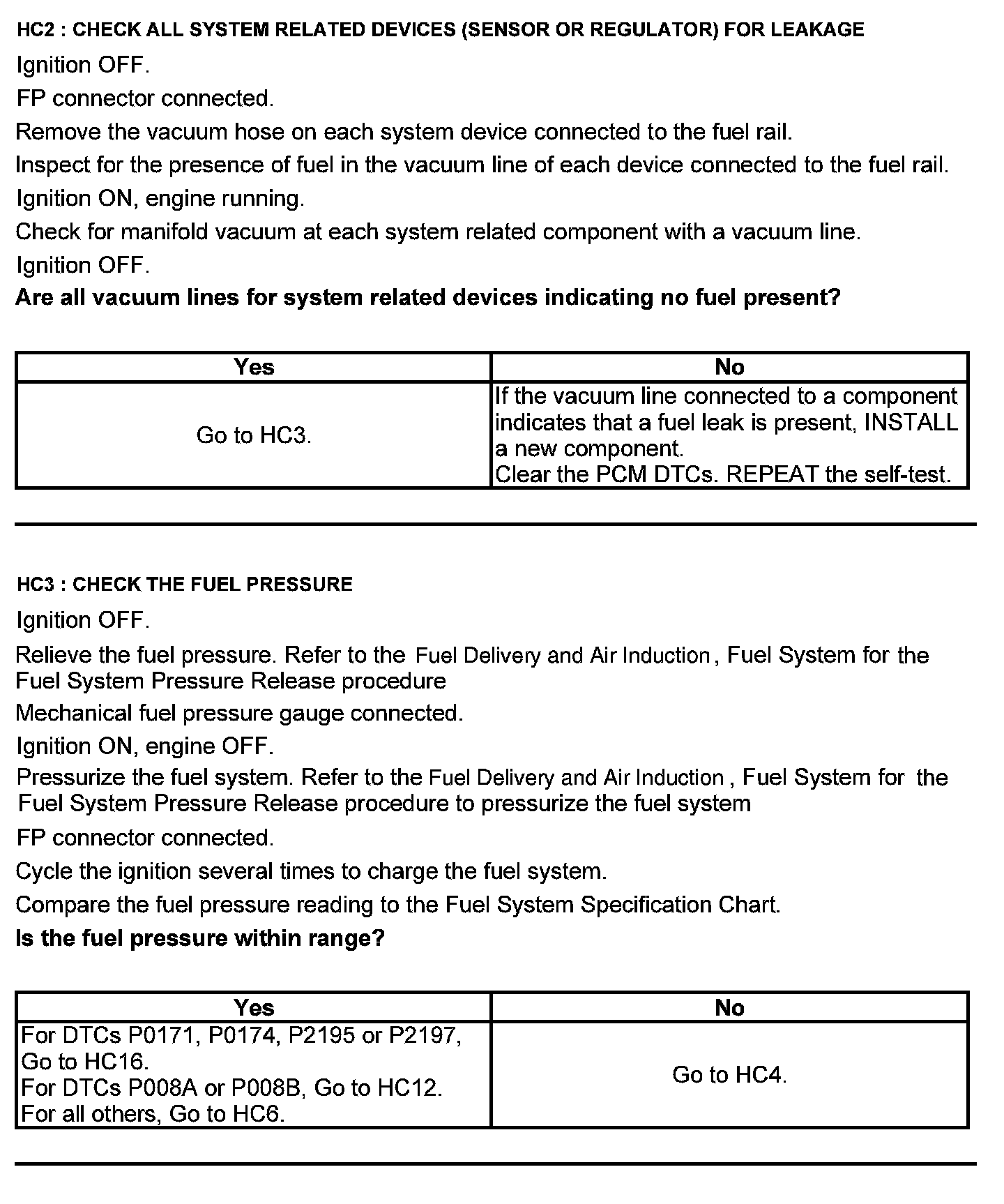 Test HC: Fuel Delivery System
