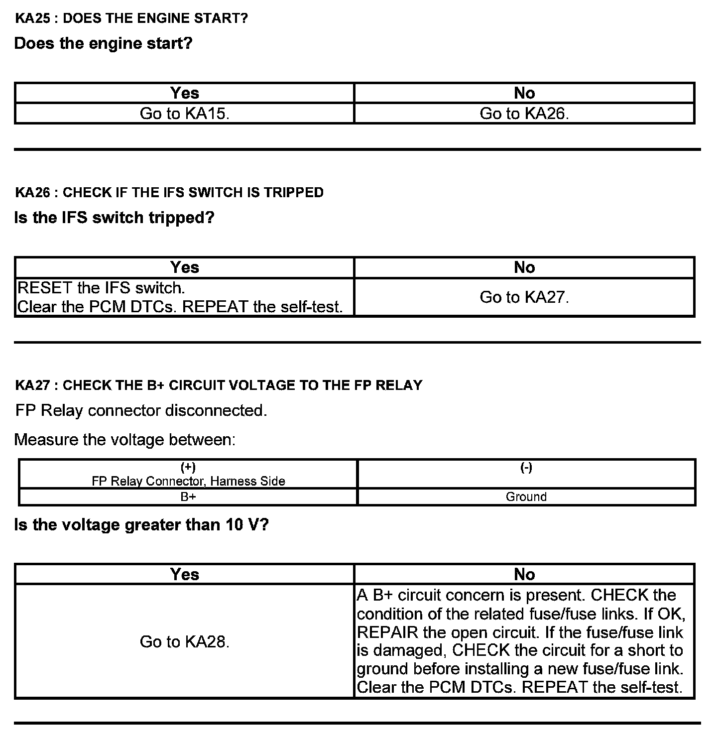Test KA: Fuel Pump (FP) Relay