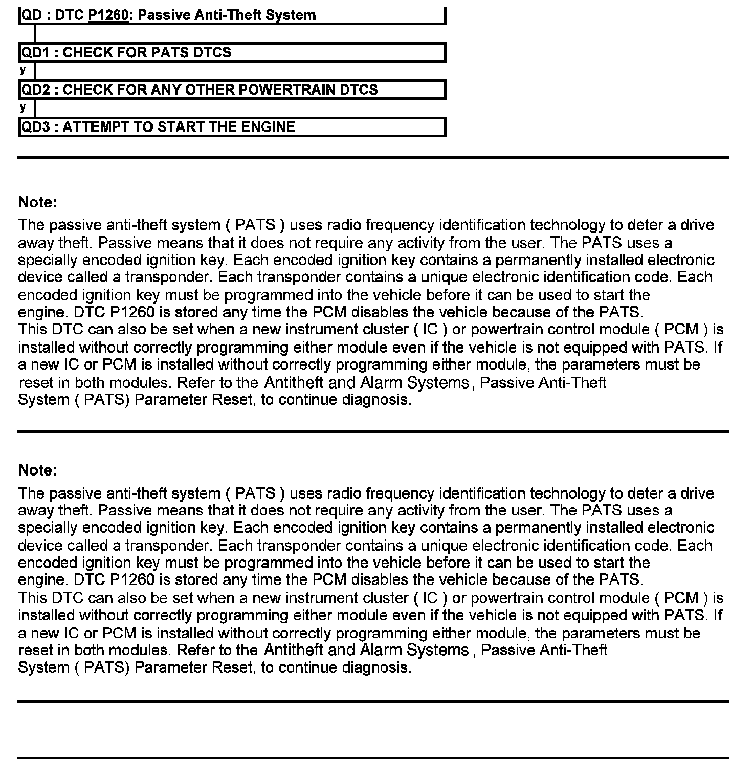 Test QD: DTC P1260: Passive Anti-Theft System