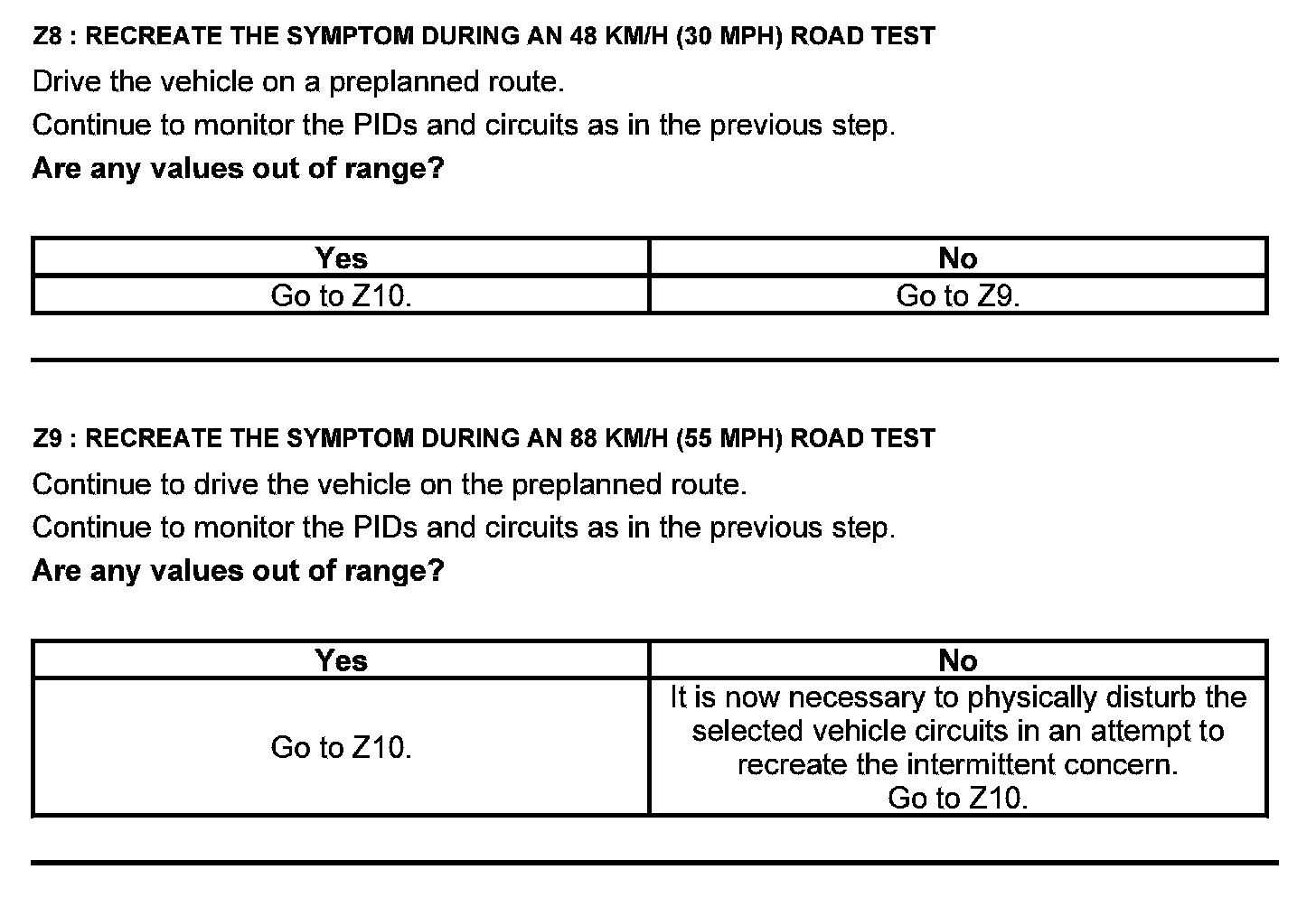Test Z: Intermittent