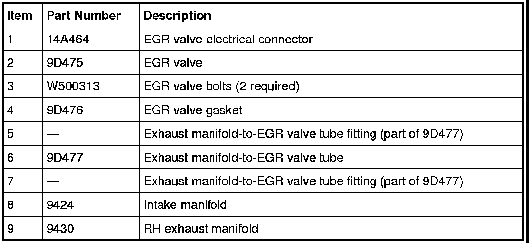 Exhaust Gas Recirculation (EGR) System Components - Exploded View
