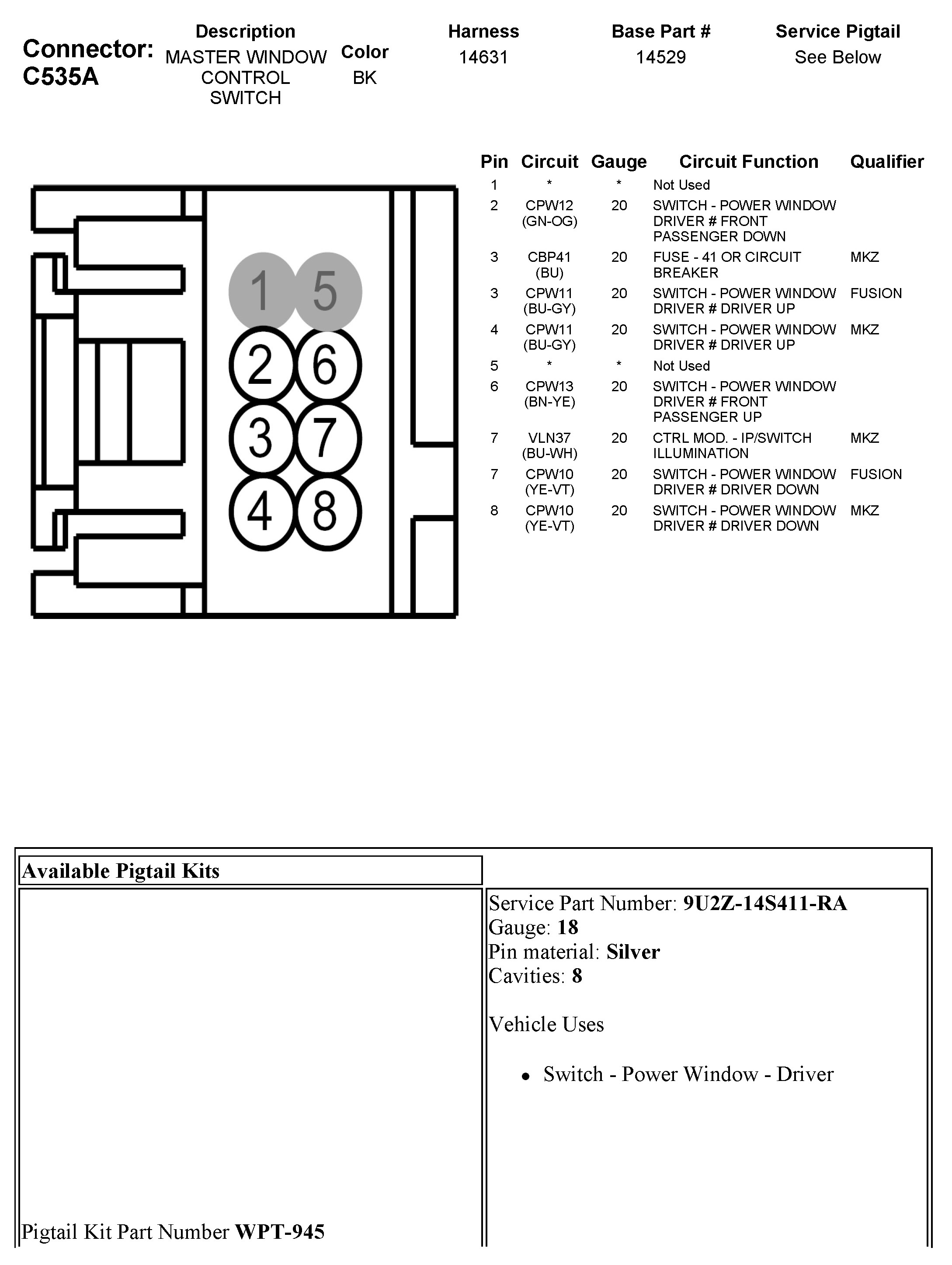 C535A Master Window Control Switch