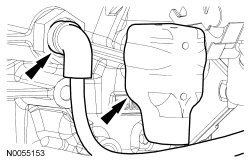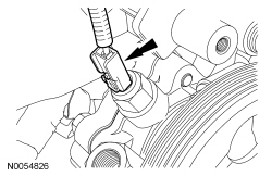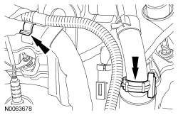 - Attach the block heater wiring harness retainer to the power steering reservoir hose and the PSP (Power Steering Pressure) hose.
