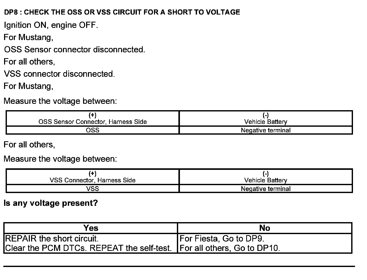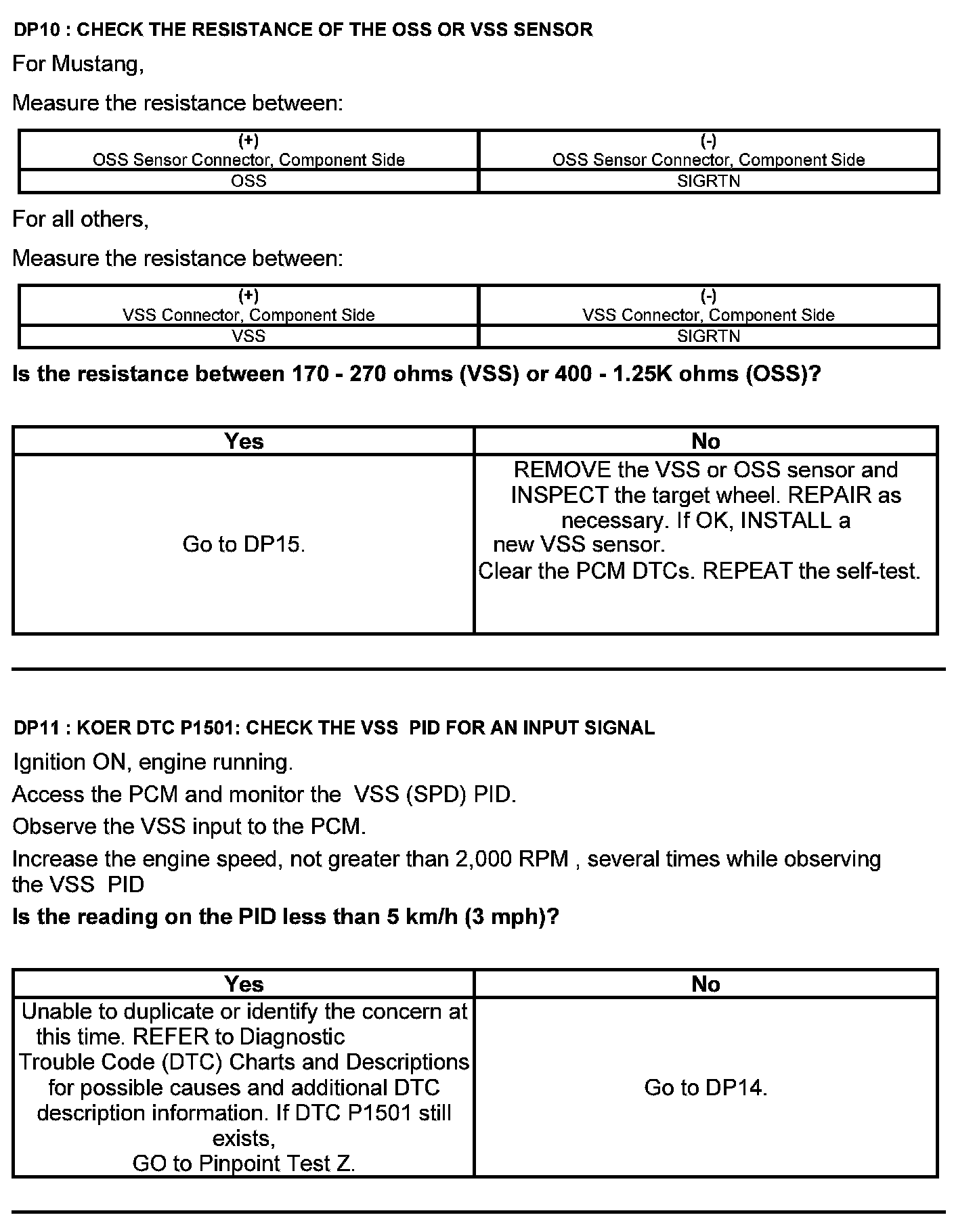 Test DP: Output Shaft Speed (OSS) Sensor/Vehicle Speed Sensor ( VSS)