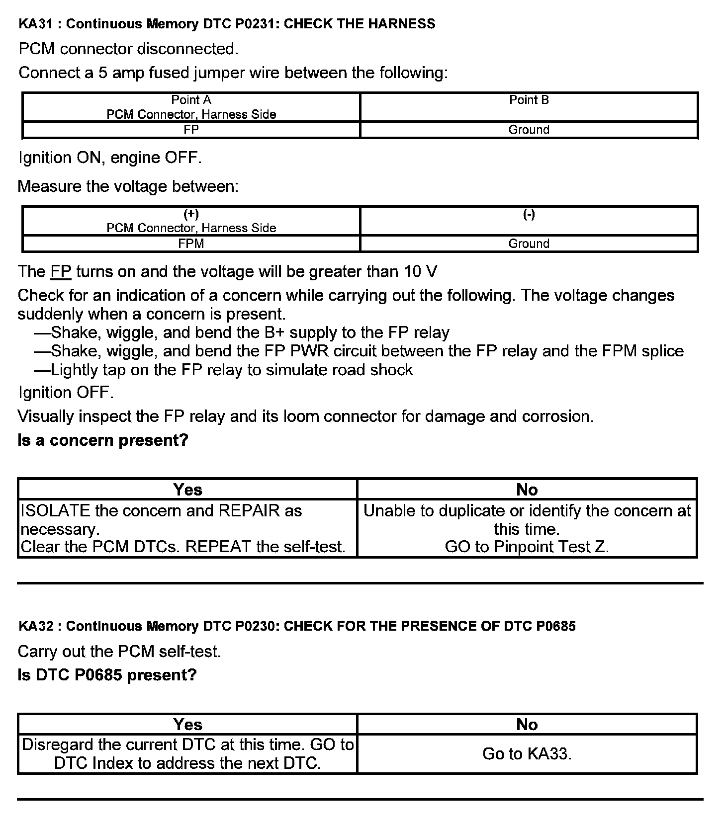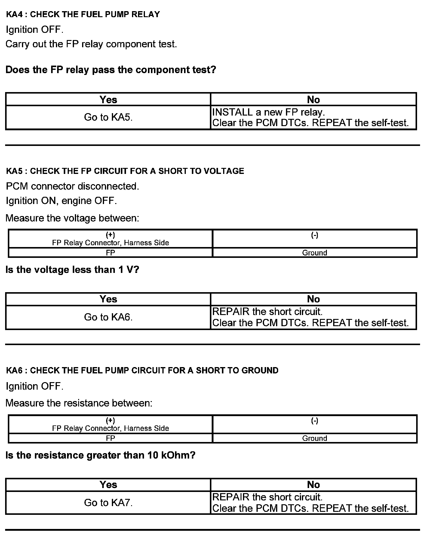 Test KA: Fuel Pump (FP) Relay