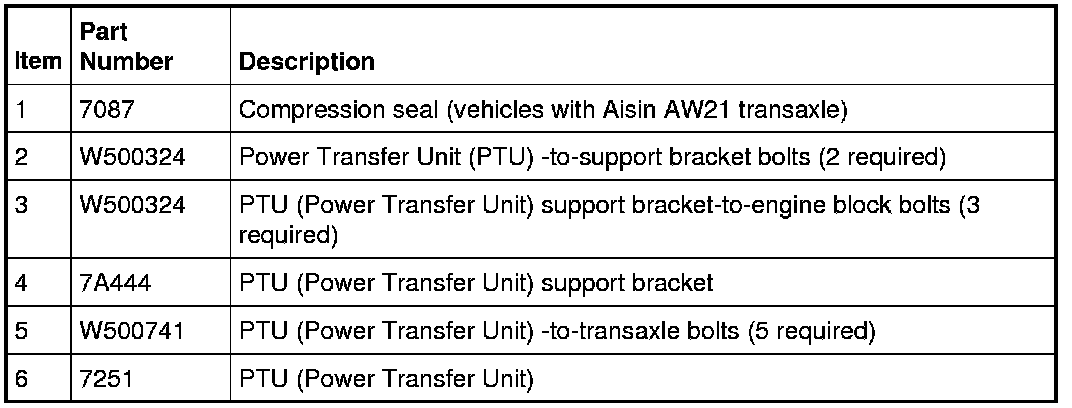 1. NOTICE: A new compression seal must be installed whenever the Power Transfer Unit (PTU) is removed from the vehicle. Failure to replace the compression seal may allow debris to enter the area around the transaxle seal and cause the transaxle seal to fail.