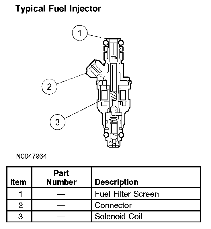The fuel injector is normally closed, and is operated by a 12-volt source from the fuel injector relay. The ground signal is controlled by the PCM.