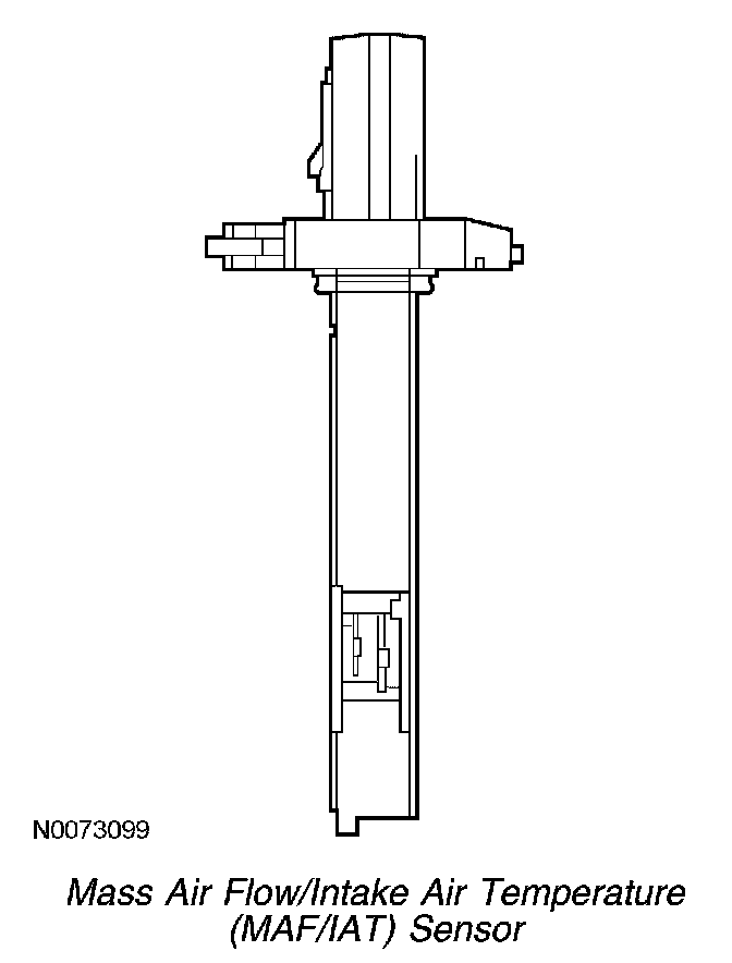 The MAF sensor uses a hot wire sensing element to measure the amount of air entering the engine. Air passing over the hot wire causes it to cool. This hot wire is maintained at 200°C (392°F) above the ambient temperature as measured by a constant cold wire. If the hot wire electronic sensing element must be replaced, then the entire assembly must be replaced. Replacing only the element may change the air flow calibration.