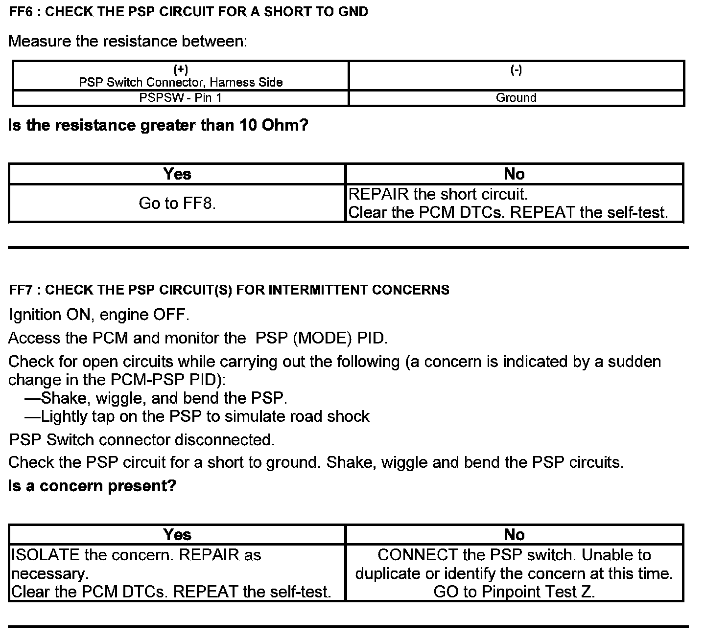 Test FF: Power Steering Pressure (PSP) Switch