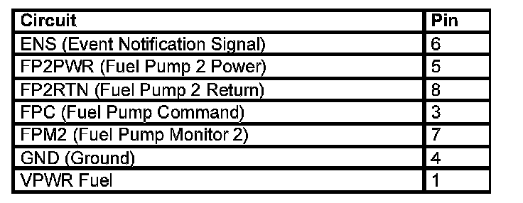 Fuel Pump Control Module Relay Connector - Refer to the Wiring Diagrams for schematic and connector information.