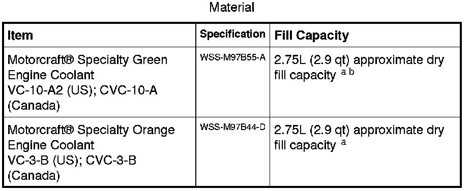 a Vehicles (built on or after July 6, 2009 through June 5, 2011) cooling systems are filled with Motorcraft(R) Specialty Green Engine Coolant. Vehicles (built on or after June 6, 2011) are filled with Motorcraft(R) Specialty Orange Engine Coolant. Mixing coolant types degrades the corrosion protection of the coolant. Do not mix coolant types. Failure to follow these instructions may result in engine or cooling system damage.