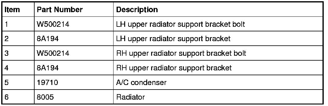 7. Remove the 2 bolts from the upper radiator support brackets, position the radiator towards the engine and remove the 2 upper radiator support brackets from the radiator.