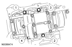 17. NOTE: Lubricate the main bearing beam bolts threads and under the bolt heads with clean engine oil.